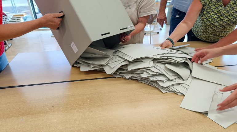 Check das Setup: Ist die Wahlurne versiegelt? Wo werden die nicht genutzten Stimmzettel gelagert? Notiere Auffälligkeiten.